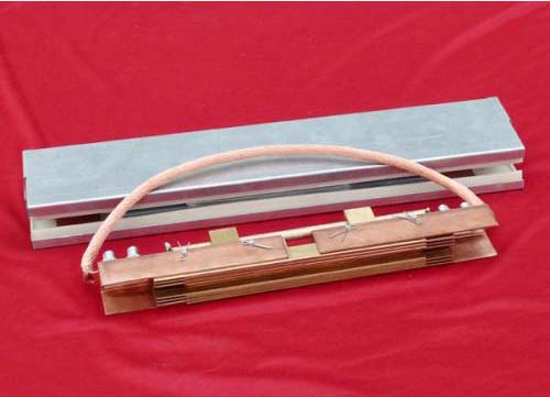 膨胀段是根据滑触线在不同温度环境工作的情况下,对滑触线在热胀冷缩时所产生的直线形变(型? 材挤压对顶)和冷缩时(型材收缩)而造成断电而设计的。它由两个可移动段与滑触线干线本体直截串联连接而成,其基本原理为:它由相对的静态滑片和动态滑片叠插组成一个与滑触线本体截面相吻合的过渡体,在滑触线环境温度变化时可自由地进行直线移动。由于静态滑片和动态滑片叠插后,无论怎样伸展与收缩,它都能够给集电器的电刷一个直线过渡的平面,从而克服了较早时期膨胀接头而带来的膨胀范围窄,集电器电刷跨越困难而造成断电,接触面变小而跳火等故障。由于静态滑片和动态滑片两端与滑线本体直截连接后,同时又设置两根滑动导杆将静态滑片和动态滑片穿插导向,因此,它具有良好的同轴度。与此同时,在静态滑片和动态滑片两端的上方还设置两根与滑接片相并联的软电缆,从而稳定和增加该膨胀段的载流量,使整个系统不致于因膨胀段的设置而影响整线额定载流量 .膨胀段的可伸缩范围可在 0~200mm之间调节,可以吸收滑线导轨本体材料为铝、铜,膨胀点距离150米/段、周边环境温度-40℃~+115℃时,所产生膨胀系数而引发的伸缩距离,并使集电器能顺畅通过而不影响其供电质量。