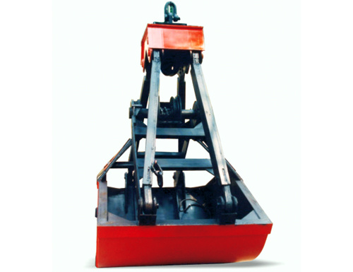 工作开始时,支持钢丝绳将抓斗起吊在适当位置上,然后放下开闭钢丝绳,这时靠下横梁的自重迫使斗以下横梁大轴为中心将斗部打开,当斗部开至两耳板的碰块相撞时,即斗部打开到最大极限。开斗时,上横梁滑轮和下横梁滑轮中心距加大,然后支持钢丝绳落下,将已打开的抓斗,落在要抓取的松散堆积物上面,再收绕开闭钢丝绳,将上横梁滑轮与下横梁滑轮的中心距恢复到原来的位置,这样就完成了抓取物料过程。在闭合的斗部里已装满了物料,最后提升开闭钢丝绳,整个抓斗亦被吊起,经行车移动到所需卸料场地上,开斗卸下所抓取的物料。