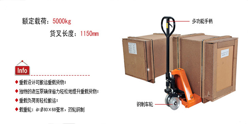◆ 5吨液压搬运车重型设计可搬运重载货物;