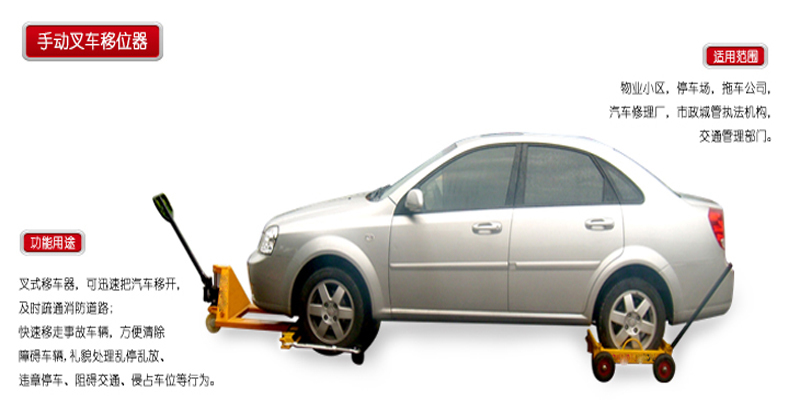 叉式移车器,可迅速把汽车移开,及时疏通消防道路,快速移走事故车辆,方便清除障碍车辆,礼貌处理乱停乱放、违章停车、阻碍交通、侵占车位等行为