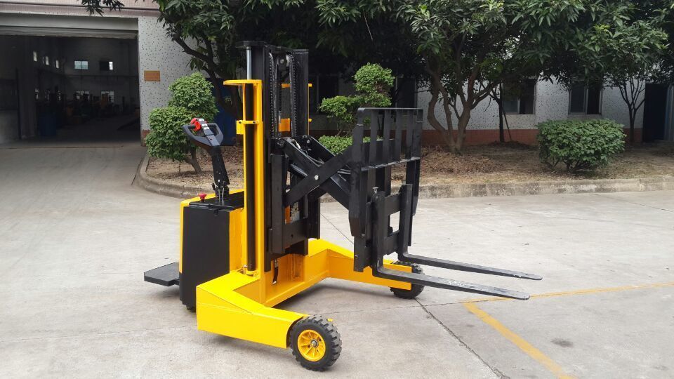 ◆ 单双面托盘均可以使用,车子不动货叉可以往前伸延。底盘离地高,爬坡度可达到25%。配实心大轮胎,方便越过一些障碍物。