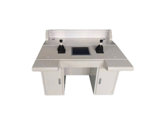 操作台按照人体工程学原理设计,台面美观大方。在操作台内有集成控制箱,控制箱内可安装PLC、视频录像机等设备。操作台上合理布 置按钮、转换开关、指示灯、操作手柄及触摸屏等设备。
