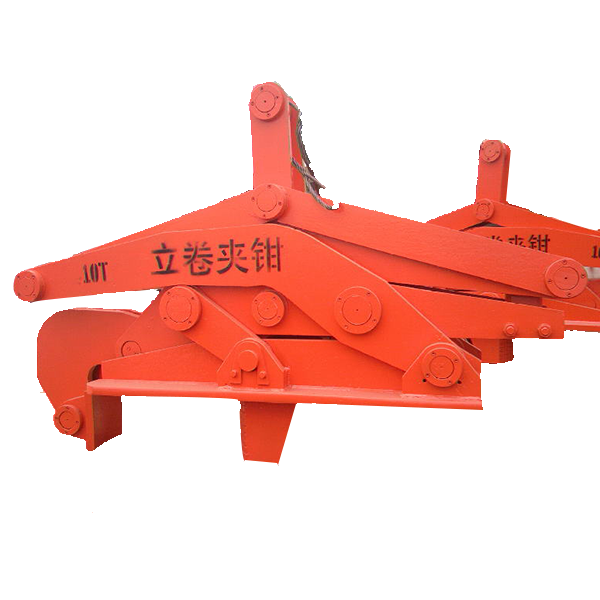 通过机械剪力原理,对立式摆放的卷钢进行单边抓取,来完成卷钢的装卸,当改变起重力点时,可以使卷钢由立式变为卧式,也可以使卷钢由卧式翻转为立式。