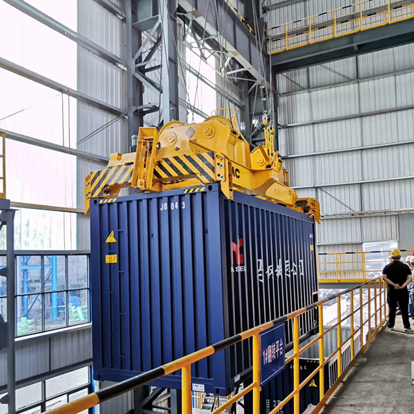 伸缩吊具由两部分组成:固定框架和伸缩梁。伸缩梁由伸缩驱动机构伸缩驱动,可以适应不同规格的集装箱。吊具和吊具的旋转一般是由液压驱动的(现在少量的吊具使用纯电机驱动),在起重机的驾驶室由驾驶员来控制。由于在吊具上安装了多个传感器,并吊起了起重机的联锁装置,因此可以大大提高起重集装箱吊装的安全性,降低各种类型的风险。为了提高效率并适应不同起重机的起重要求,制造商安装了各种机构,例如液压导板,倾斜装置,旋转机构机构等,这使得伸缩式吊具越来越复杂,功能越来越多。
