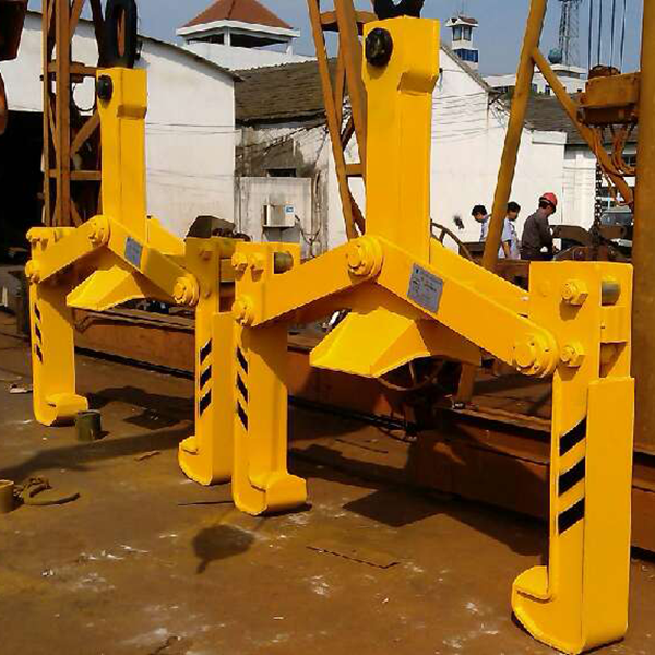是为满足各大钢厂、港口、码头等单位大批量卧式卷状物体的吊运需求,根据中华人民共和国机械行业标准重型机械通用技术条件JB/T50001-5000-15-1998,借鉴国内外成熟技术,经过数年的精心开发、研究、设计、试制成型的卧式卷状物体转运专用工具。