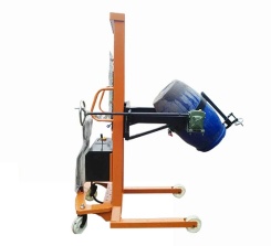 可倾式油桶搬运车(见图一)设计新颖,结构合理,使用方便,适用于工厂、车间、仓库、油库的油桶装卸、搬运、堆垛。油桶提升后,可以在空中作大于180度的翻转,停留作业,特别适用于化工、食品车间材料或配料使用,并可用于在汽车上进行油桶的装卸和堆垛。