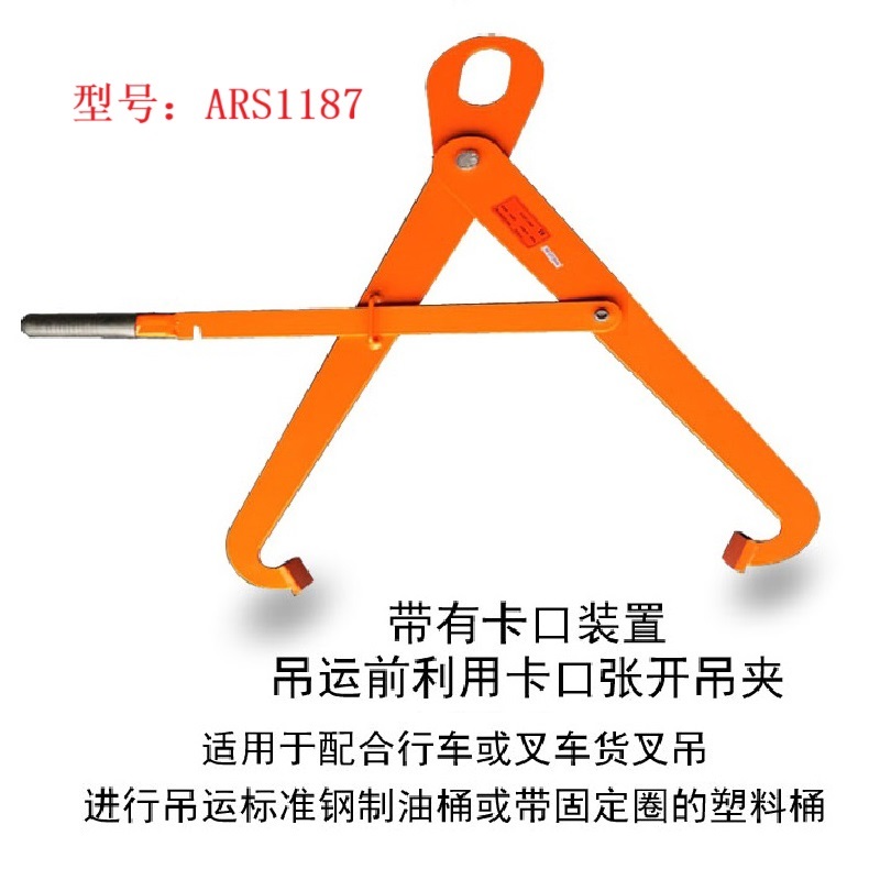 适用于配合行车或叉车货叉吊进行吊运标准钢制油桶或带固定圈的塑料桶;