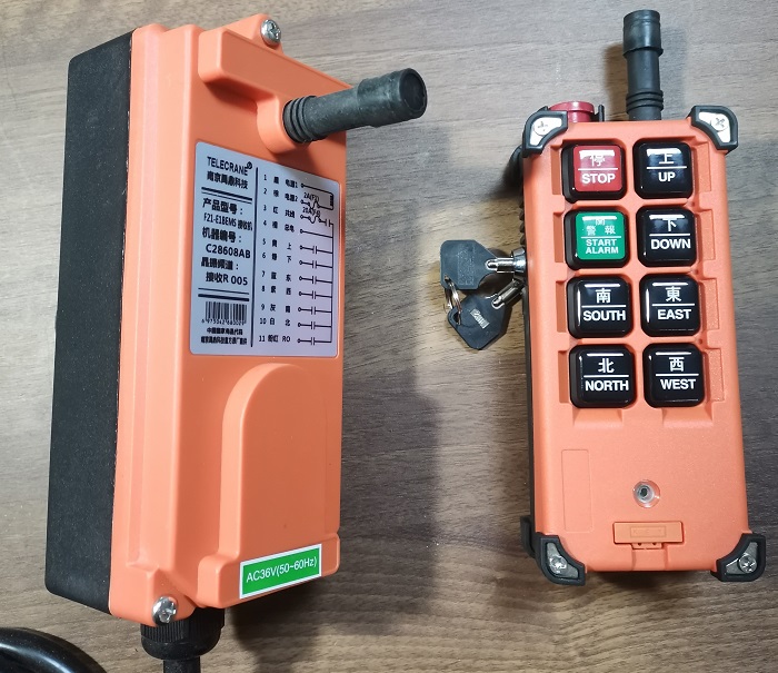 禹鼎2024年起重机新规F21-E1B EMS 钥匙款天车遥控器,针对市场安检需求和老款F21-E1B遥控器手柄的磁性钥匙经常脱落、丢失,