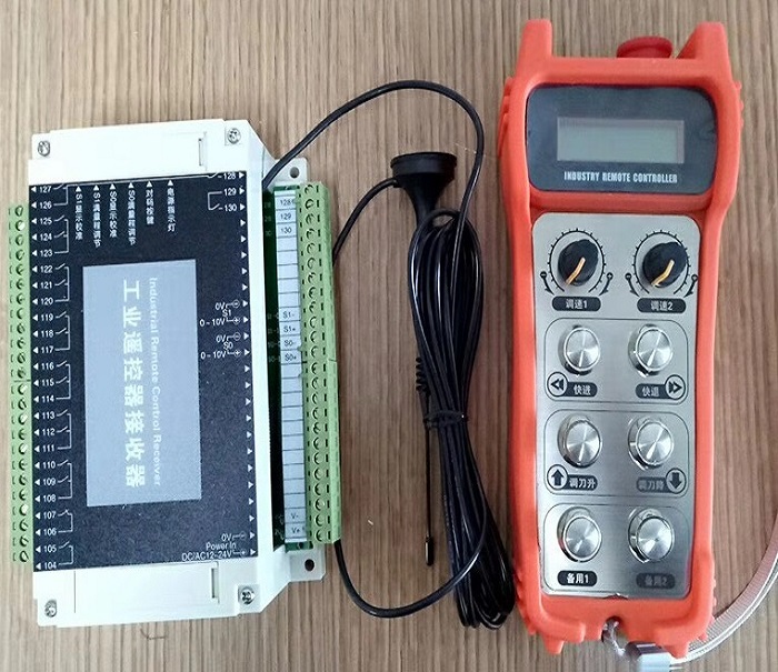 $ 遥控器支持6组开关量(继电器常开干接点)输出和2组速度模拟量0~10V输出。