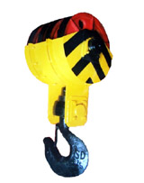 起重机械中最常见的一种吊具。吊钩常借助于滑轮组等部件悬挂在起升机构的钢丝绳上。