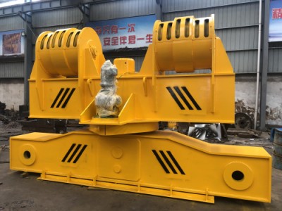 6、伸缩吊具包括伸缩梁、底梁、伸缩机构和导板装置。底梁连接到回转支承的底部,伸缩梁安装在底梁的两端,伸缩梁上安装有导板装置。伸缩机构安装在底梁上,伸缩机构靠近底梁的两端,伸缩机构驱动伸缩梁沿导板装置伸缩。
