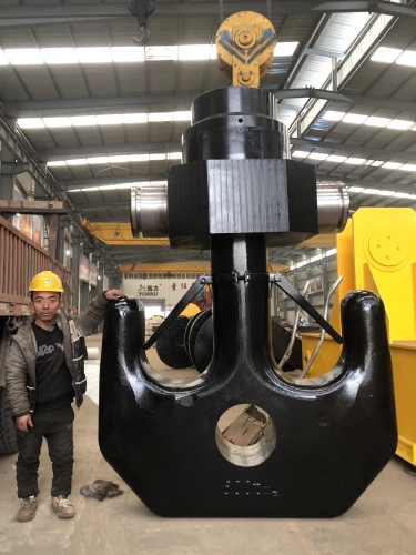 吊钩按形状分为单钩和双钩;按制造方法分为锻造吊钩和叠片式吊钩。单钩制造简单、使用方便,但受力情况不好,大多用在起重量为80吨以下的工作场合;起重量大时常采用受力对称的双钩。叠片式吊钩由数片切割成形的钢板铆接而成,个别板材出现裂纹时整个吊钩不会破坏,安全性较好,但自重较大,大多用在大起重量或吊运钢水盛桶的起重机上。吊钩在作业过程中常受冲击,须采用韧性好的优质碳素钢制造。