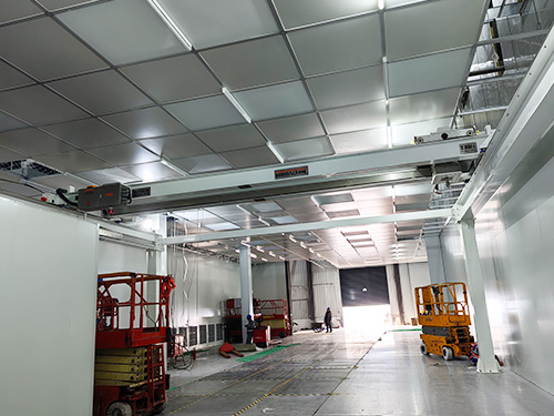 极片干燥车间:锂电极片极易吸附灰尘,锂电无尘室行车可在洁净空间内实现高速、无残留搬运,避免二次污染。