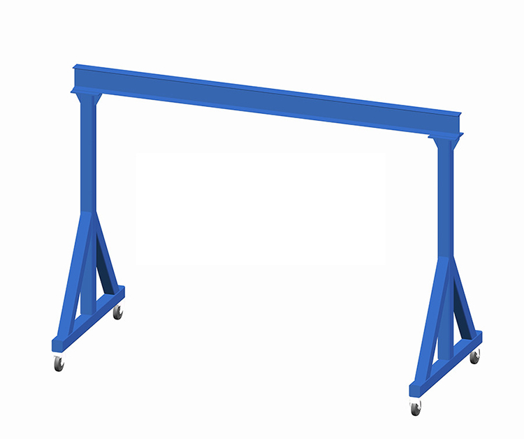 轻便式龙门起重机带有4个万向轮,无需轨道,可以自由位置移动,适用于小吨位物料输送,方便操作,经济性好。