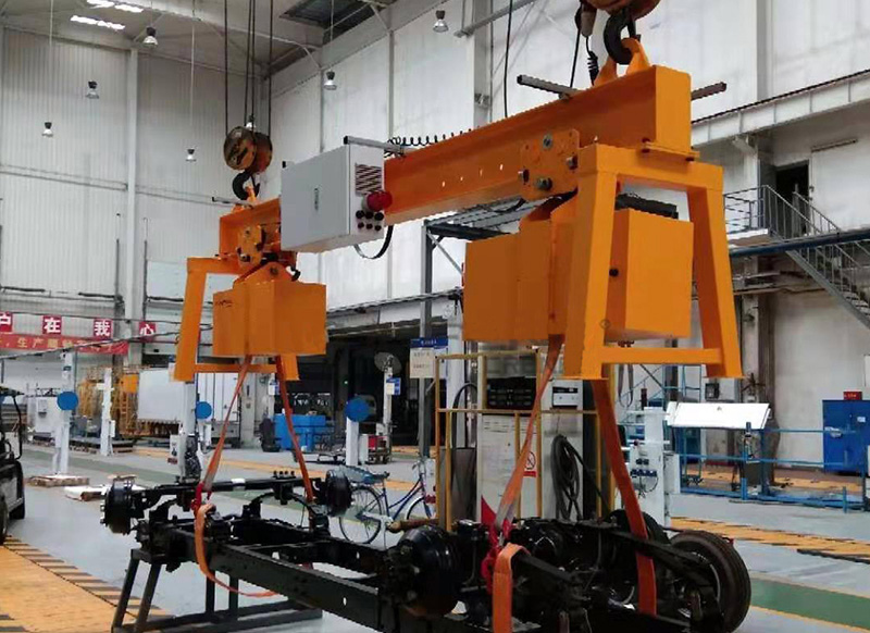 带式电动翻转机采用开凹槽的带轮增加了翻转带和带轮间的摩擦力,同时,在带轮下方两侧各加一带张紧柱,以确保翻转带与带轮间的包角不受翻转工件宽度的影响,从而增加摩擦力,使翻转机的动力传递更加安全,可靠。