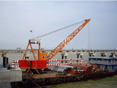 船用钢材起重机,安装在专用的船体或趸船上,适用于各类货船装卸货,可进行岸与货船,或货船间的货物转驳。一般可采用钢丝绳变幅或齿条变幅结构形式,可360度全回转。配用吊钩或抓斗装卸货物。根据用途一般可分为过驳用起重机(内河湖泊近海)、货船随船起重机、挖泥船用起重机、水下打捞多用途型船用起重机。该类产品具有结构紧凑、运转平稳可靠、作业效率高、操作方便、易维护、故障率低等特点。