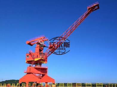 单臂架船厂门座起重机,为港口装卸散货及件杂货的全回转门座起重机,用于码头前沿。适用于岸线较长的码头,如船厂的船台、舾装码头和万吨级泊位散杂货码头等。一般采用单臂架钢丝绳变幅、单臂架齿条变幅或四连杆臂架齿条变幅结构形式,配用吊钩或抓斗装卸货物。其结构具有足够的强度、刚度、稳定性和抗疲劳性。各机构布局合理,传动平稳,操作灵活,维修方便,能适应吊钩和抓斗的作业要求。在规定幅度范围内,起吊额定载荷可作水平变幅和360度回转。起升、变幅、回转、行走机构可单独动作,也可联合动作。整机可沿水平铺设的轨道直线运行。该类产品具有工作幅度大、起升高度高、速度快、运转平稳可靠、作业效率高等特点。