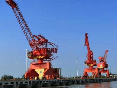 门座式钢材起重机,为港口装卸散货及件杂货的全回转门座起重机,用于码头前沿。适用于岸线较长的码头,如船厂的船台、舾装码头和万吨级泊位散杂货码头等。一般采用单臂架钢丝绳变幅、单臂架齿条变幅或四连杆臂架齿条变幅结构形式,配用吊钩或抓斗装卸货物。其结构具有足够的强度、刚度、稳定性和抗疲劳性。各机构布局合理,传动平稳,操作灵活,维修方便,能适应吊钩和抓斗的作业要求。在规定幅度范围内,起吊额定载荷可作水平变幅和360度回转。起升、变幅、回转、行走机构可单独动作,也可联合动作。整机可沿水平铺设的轨道直线运行。该类产品具有工作幅度大、起升高度高、速度快、运转平稳可靠、作业效率高等特点。