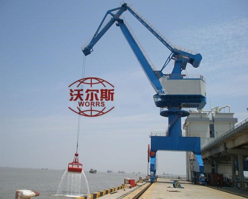 港口门座式起重机,为港口装卸散货及件杂货的全回转门座起重机,用于码头前沿。适用于岸线较长的码头,如船厂的船台、舾装码头和万吨级泊位散杂货码头等。一般采用单臂架钢丝绳变幅、单臂架齿条变幅或四连杆臂架齿条变幅结构形式,配用吊钩或抓斗装卸货物。其结构具有足够的强度、刚度、稳定性和抗疲劳性。各机构布局合理,传动平稳,操作灵活,维修方便,能适应吊钩和抓斗的作业要求。在规定幅度范围内,起吊额定载荷可作水平变幅和360度回转。起升、变幅、回转、行走机构可单独动作,也可联合动作。整机可沿水平铺设的轨道直线运行。该类产品具有工作幅度大、起升高度高、速度快、运转平稳可靠、作业效率高等特点。